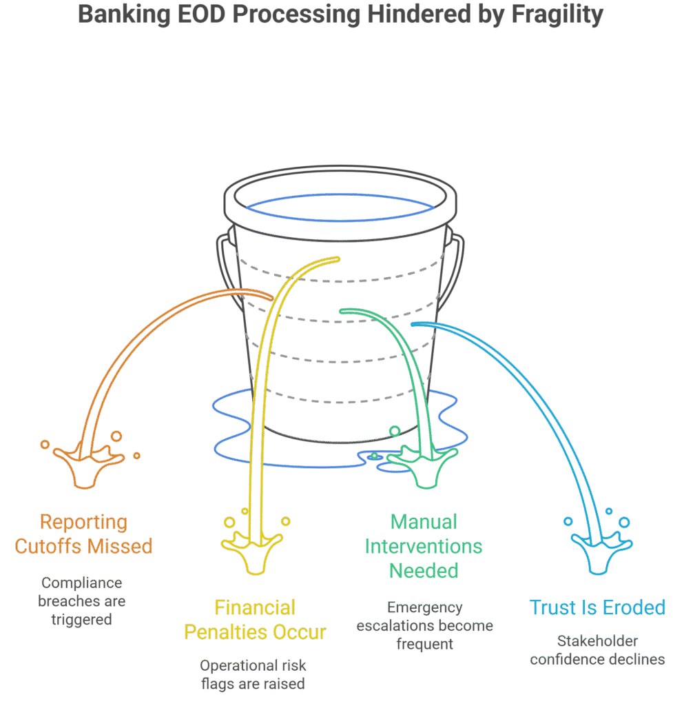 While banks invest heavily in EOD functional logic, infrastructure fragility is often the hidden cause of failure — an area most traditional monitoring overlooks.