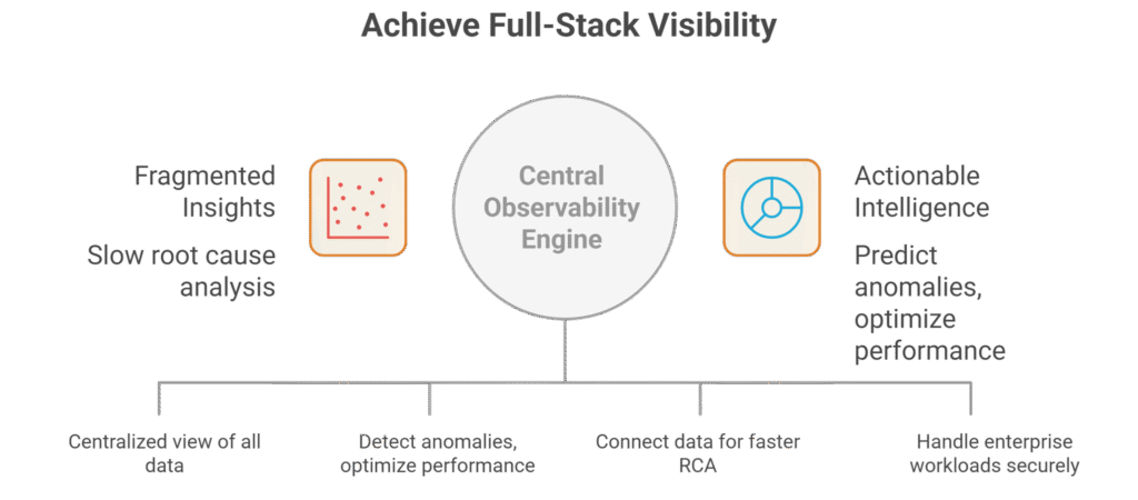 Enterprises today generate massive volumes of logs, events, and metrics across applications, databases, networks, and cloud platforms. Without a central observability engine, IT teams struggle with fragmented insights, slow root cause analysis, and higher operational risks.