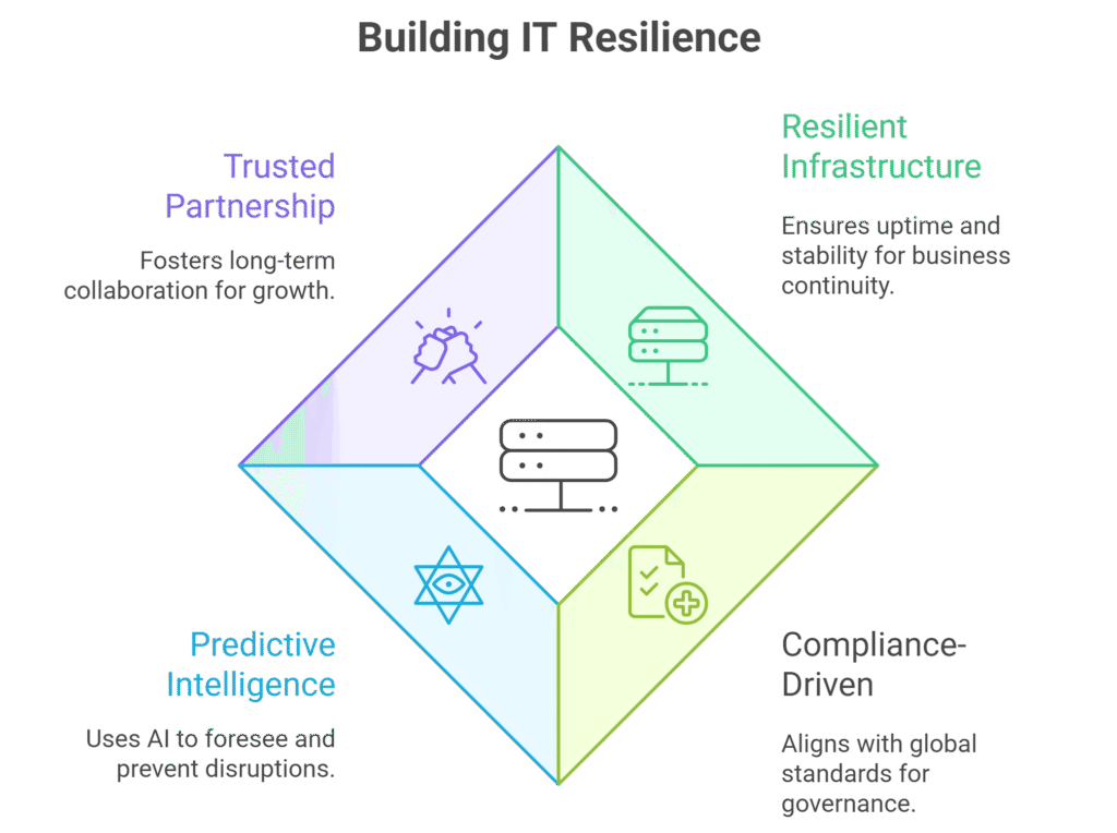 Enterprises today operate in an environment where downtime, cyber threats, and compliance gaps can directly impact growth and customer trust. IT resilience is no longer just about disaster recovery — it is about ensuring stability, agility, and compliance every single day.